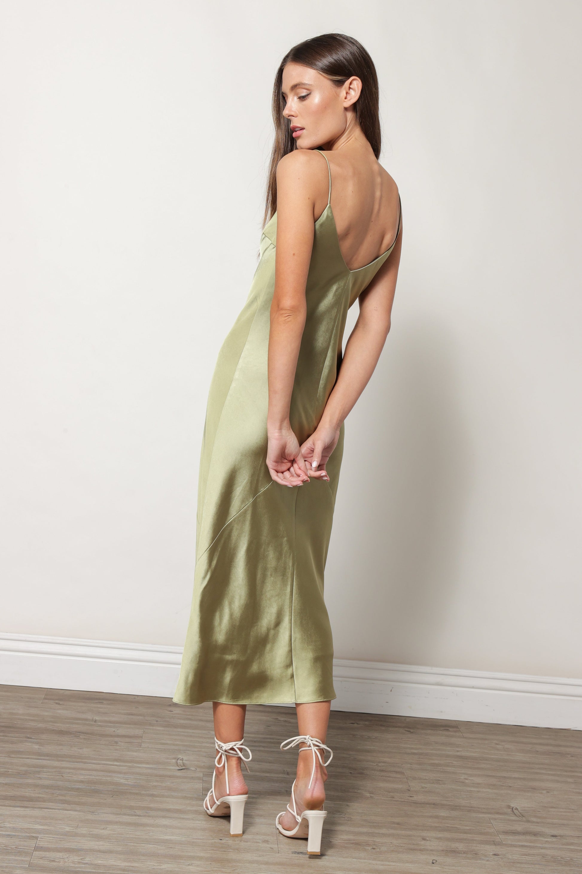 SATIN DRESS MOSS