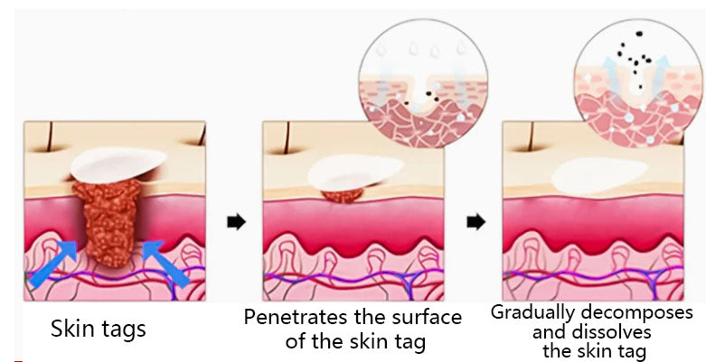 1️⃣ MicroDarts penetrate the skin tag Tiny, dissolving MicroDarts deliver active ingredients deep into the Hautanhängsel